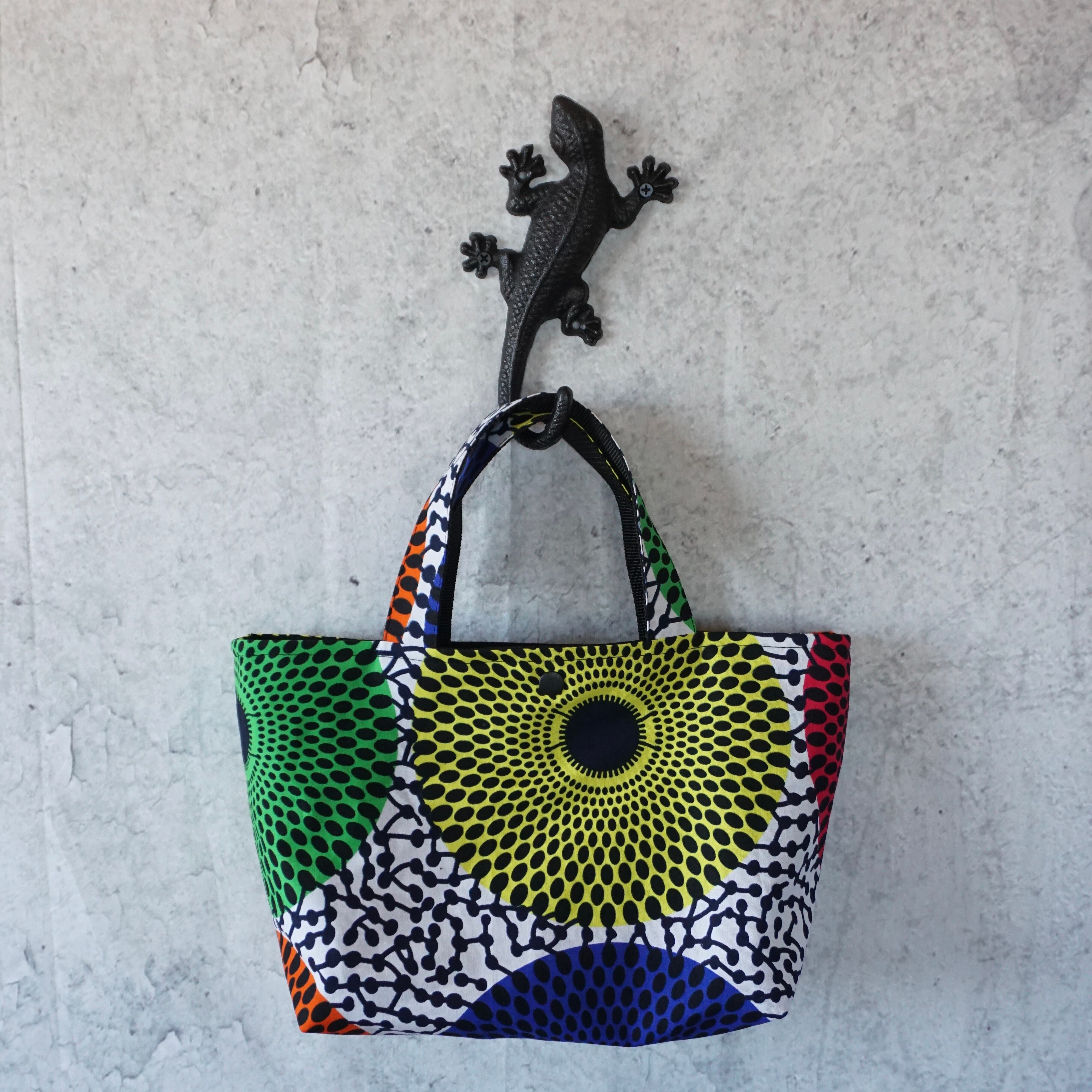African【手持ちトートバッグ】ランチバッグ マルチサークル柄
