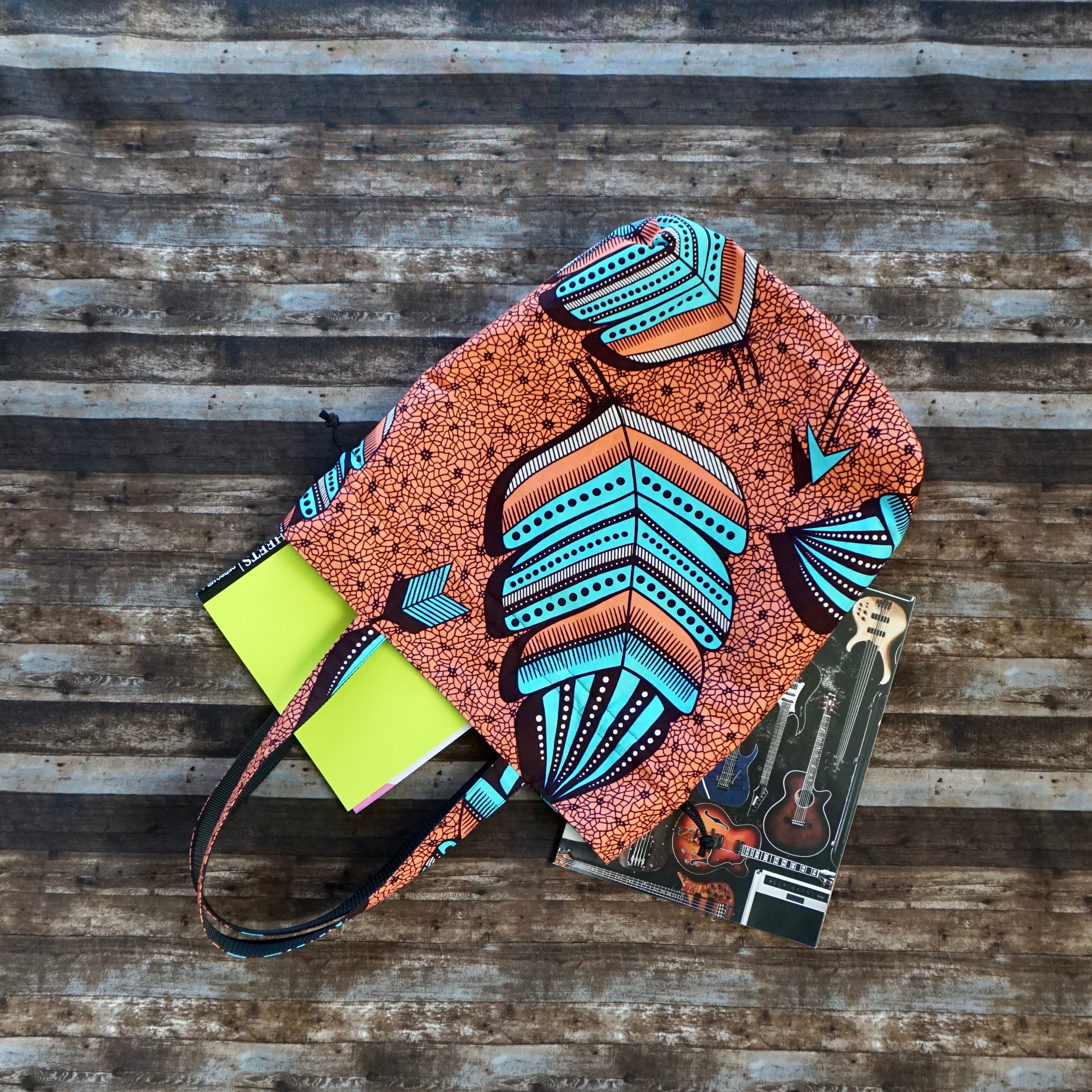 ざっくり荷物を入れられるアフリカンバティックの柄が可愛く、
